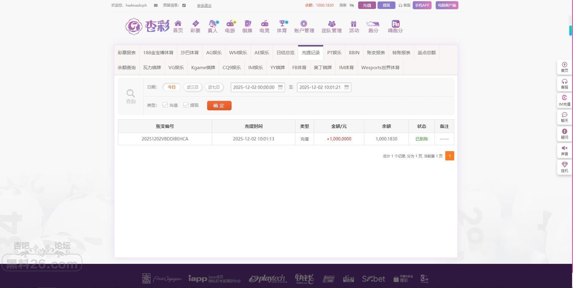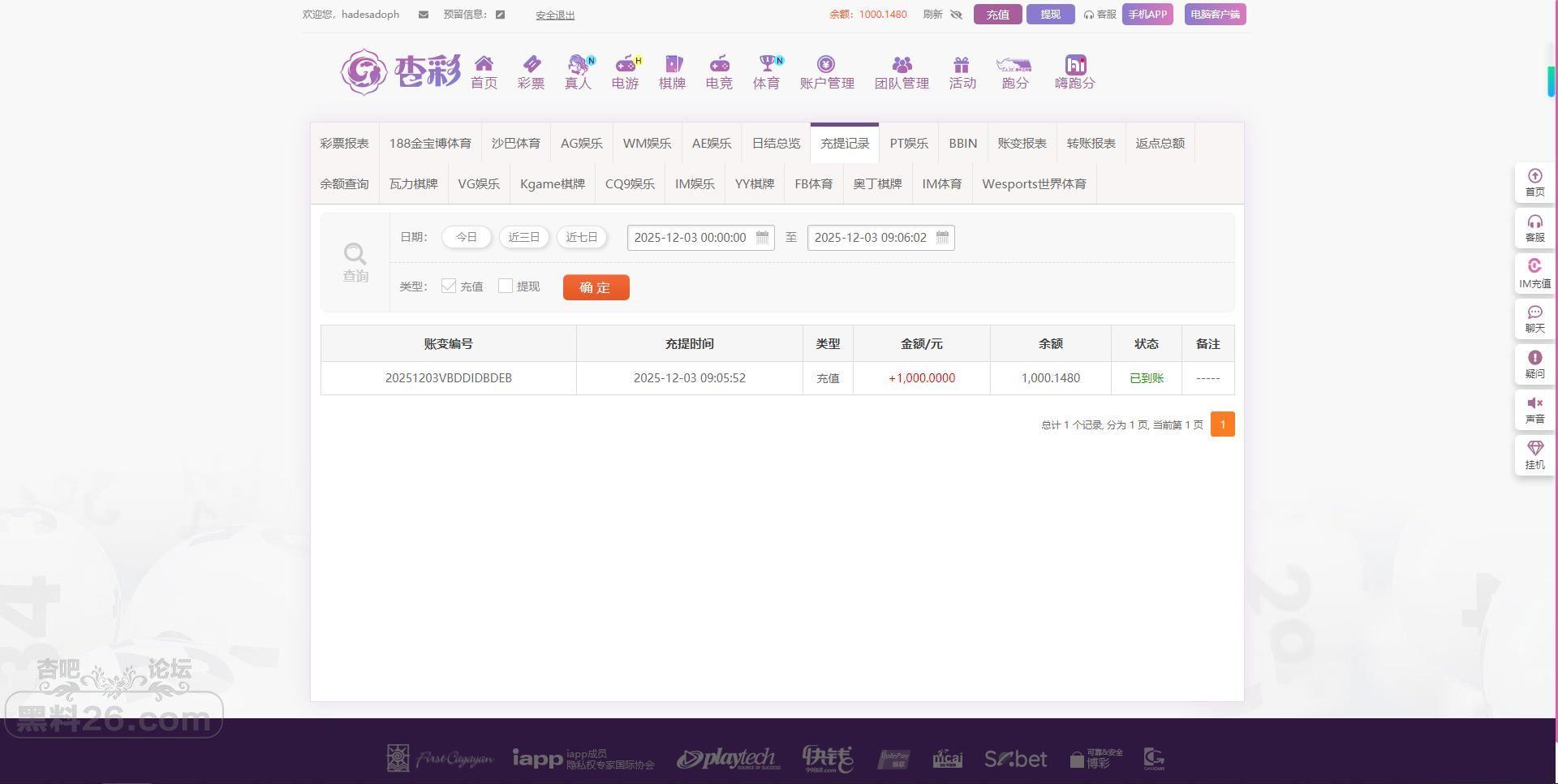 3.充值截图:
