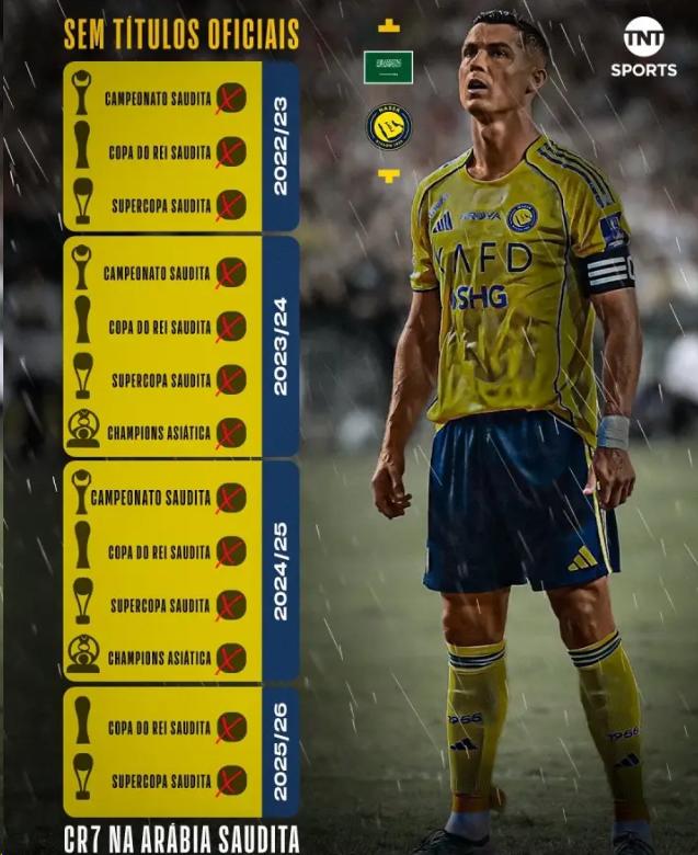 [|热帖精选] 【体育专栏】时运不济,2022年底加盟利雅得胜利后 C罗现已错失13个俱乐部冠军 |