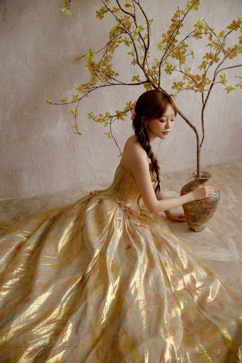 祝绪丹穿黄花裙秀纤腰美腿,甜美风穿搭尽显青春【18P】